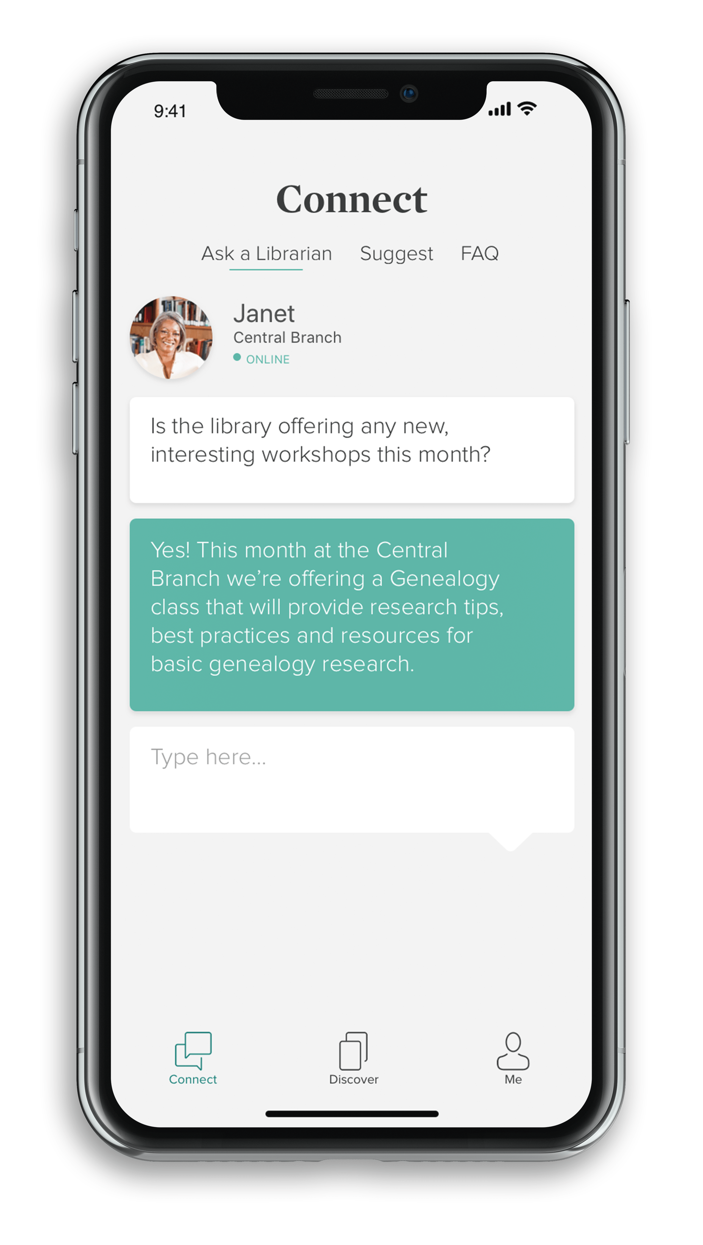Patrons can connect with their local librarians if they have questions through the “connect” feature in the app.
