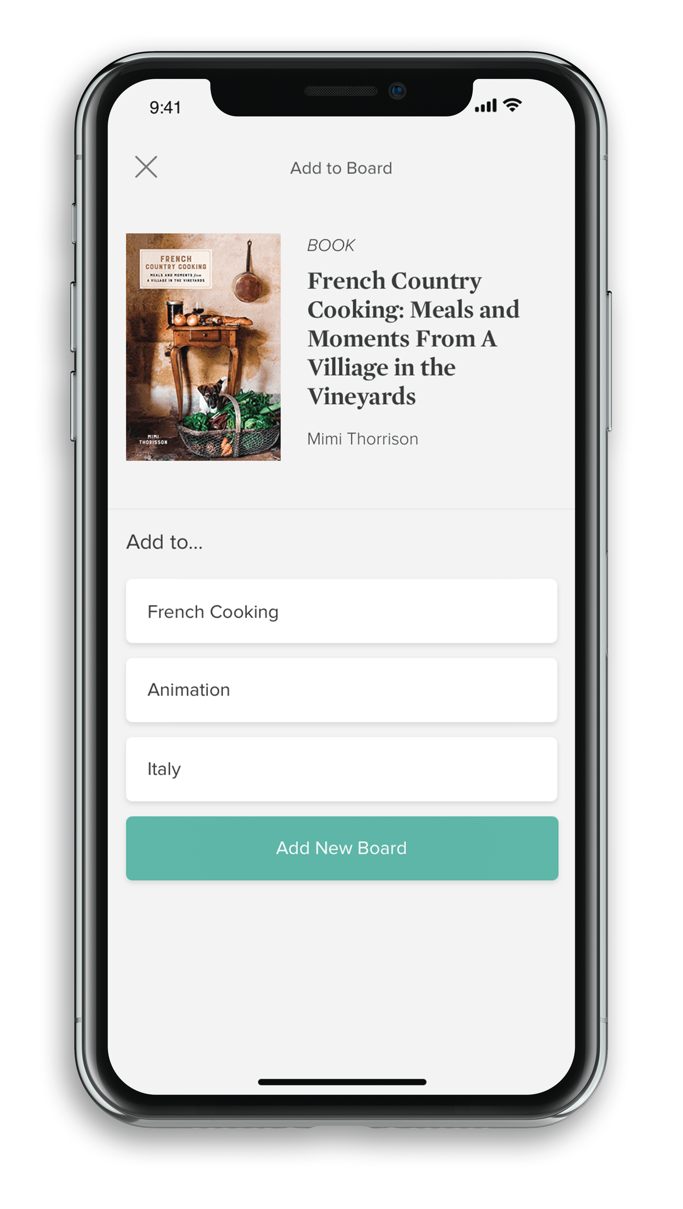 From the resource tiles, Patrons can add resources to specific "boards" they have created.