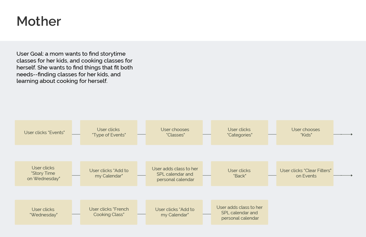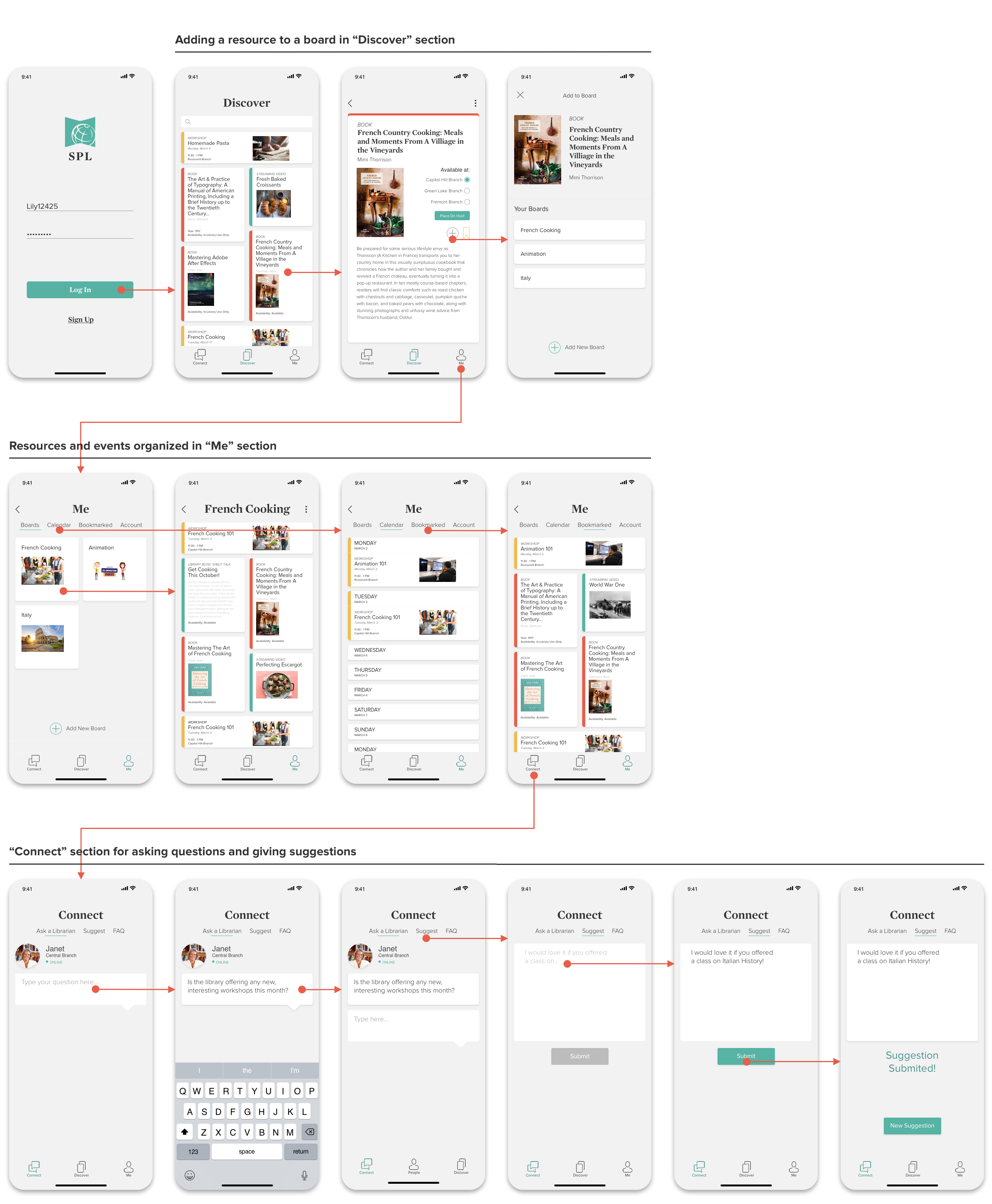 First, we did research on what the SPL offers and how they currently work. We looked at existing programs, services, locations, demographics, resources, and the means of accessing them. We also examined their website and its information architecture to understand how the resources were organized and presented.