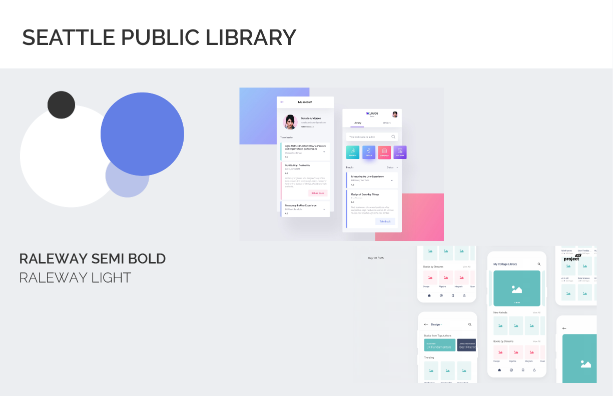 For our typeface we use Mercury to maintain the bookish aesthetic of the library while using Proxima Nova to keep the app's UI clean and modern. We also pulled from the navy blue SPL currently uses and turned it into a turquoise to add some personality. We used complimentary coral and yellow colors to make the brand appear more friendly and the app more engaging.