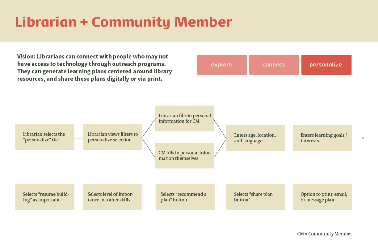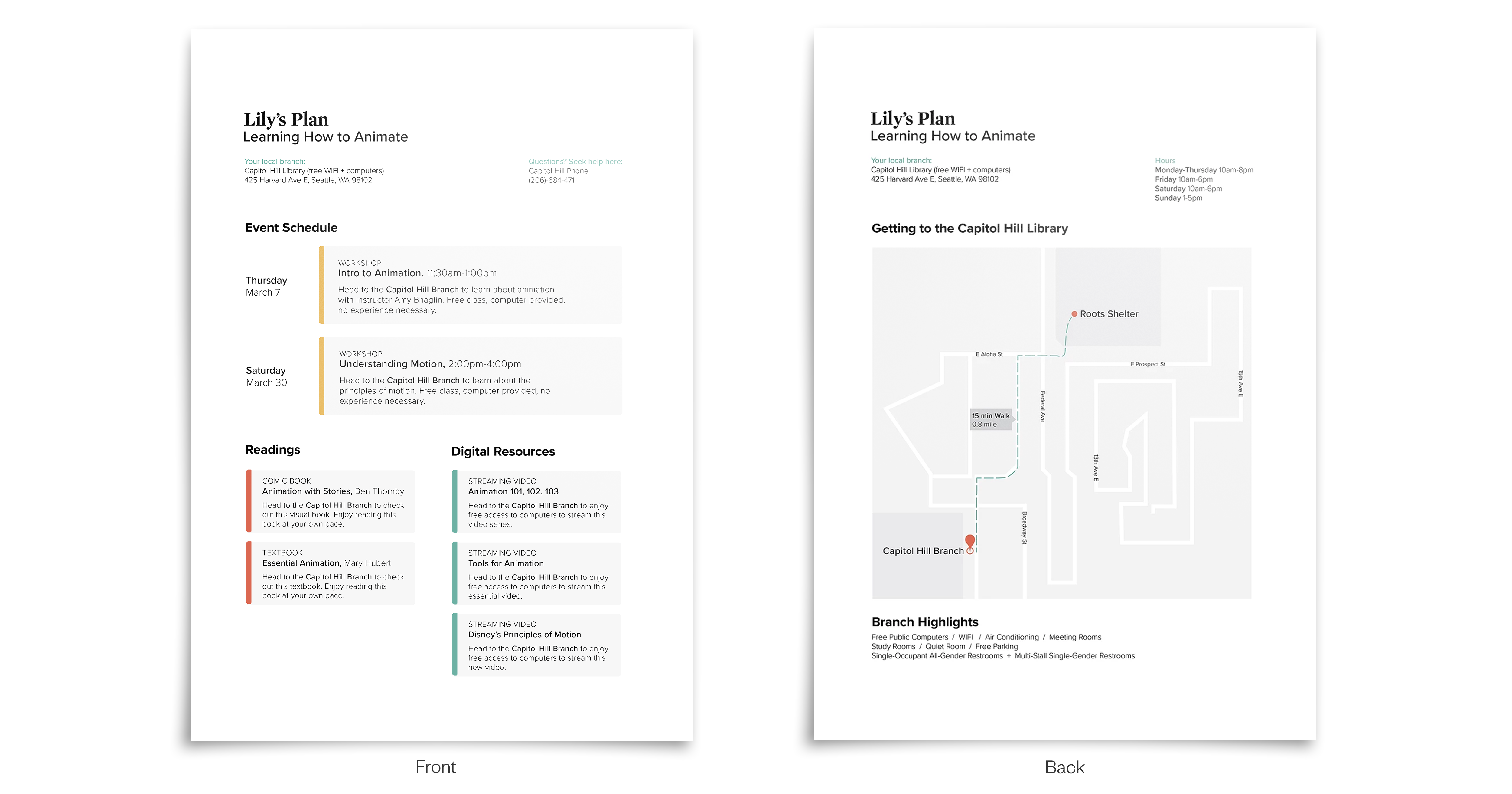 Librarians can print the learning plans that are generated in PDF format for patrons who cannot access mobile or web platforms. They can receive these personalized print-outs from librarians through existing library outreach programs and events.