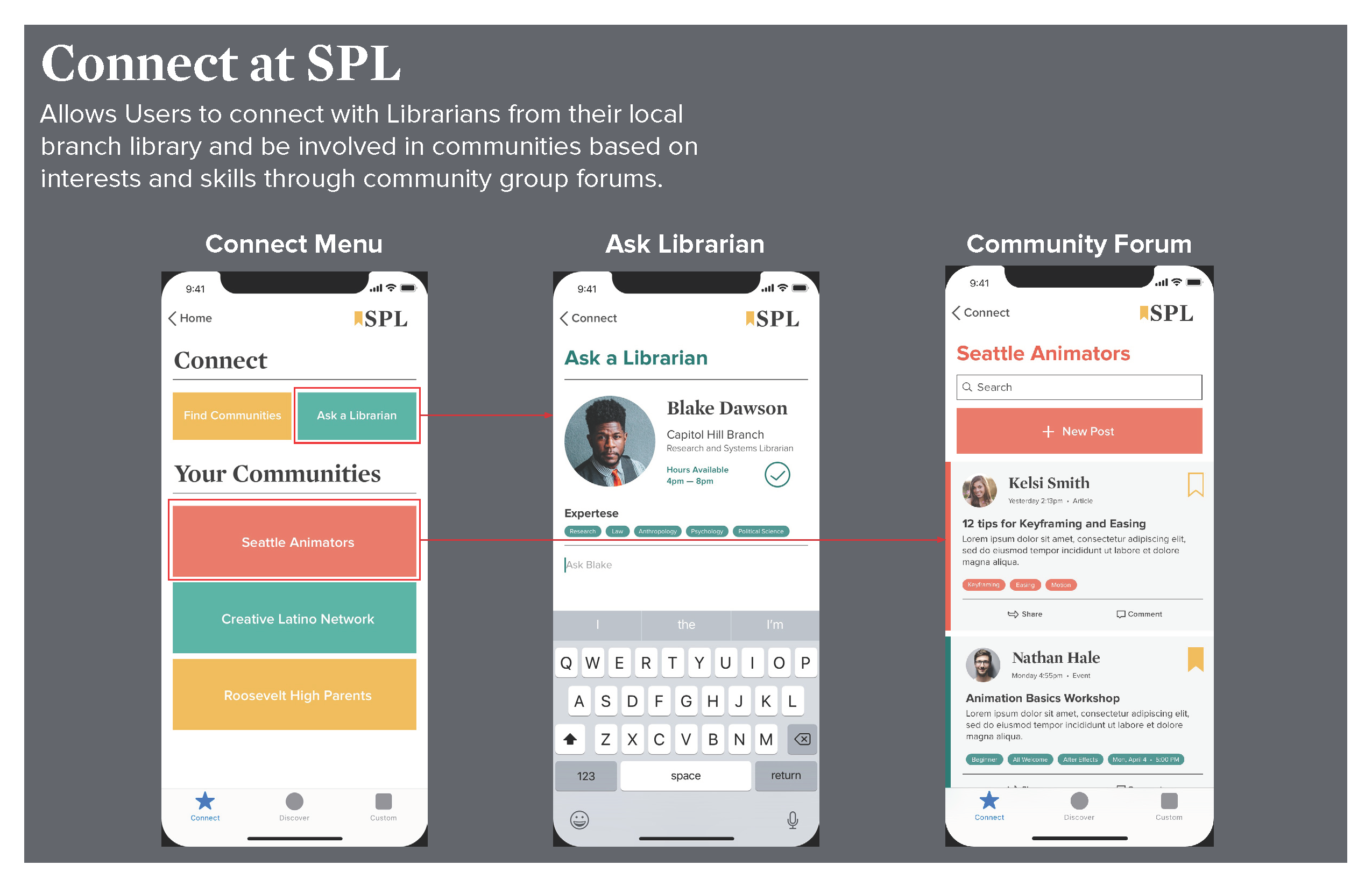 The mission of the SPL is to "bring people, information, and ideas together to enrich lives and build community". For this four week Interface Design project, our team wanted to design something that aligned with their mission and could be integrated into their existing framework to increase access to resources for these people.