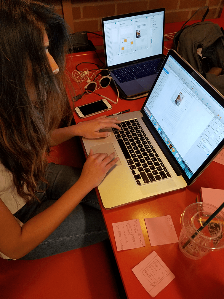 We then met together and spent hours working together to unify our ideas and design our interfaces at the library (of course).