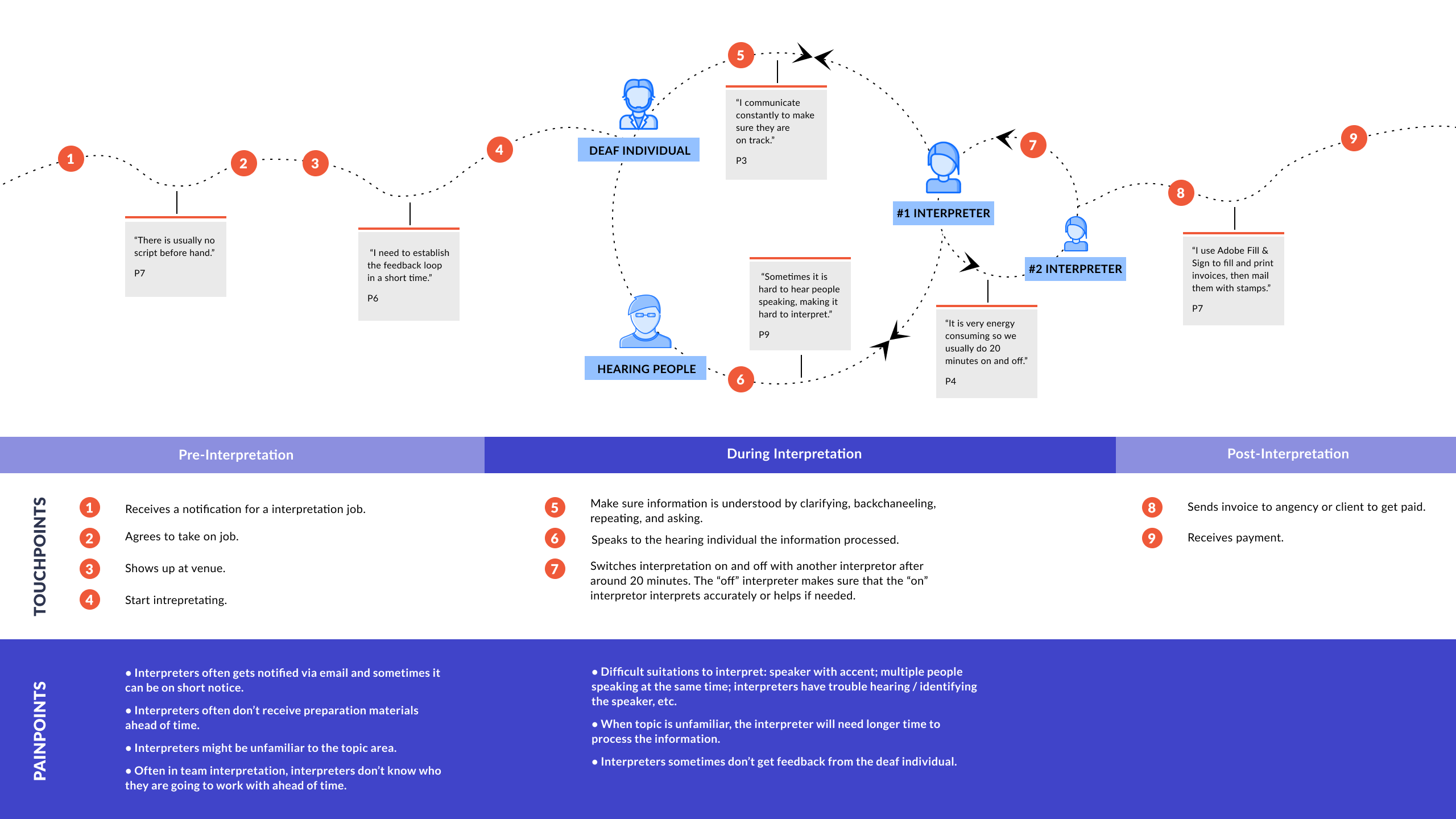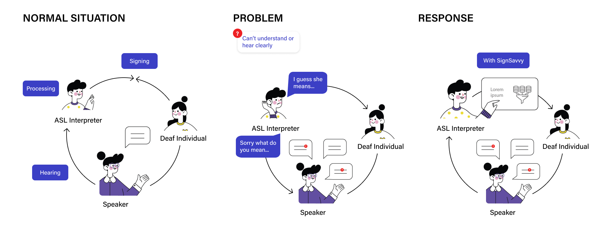As we defined our users, we wanted to scope out our problem space with research questions. After doing secondary research on the role of interpreters and deaf culture, we wondered…