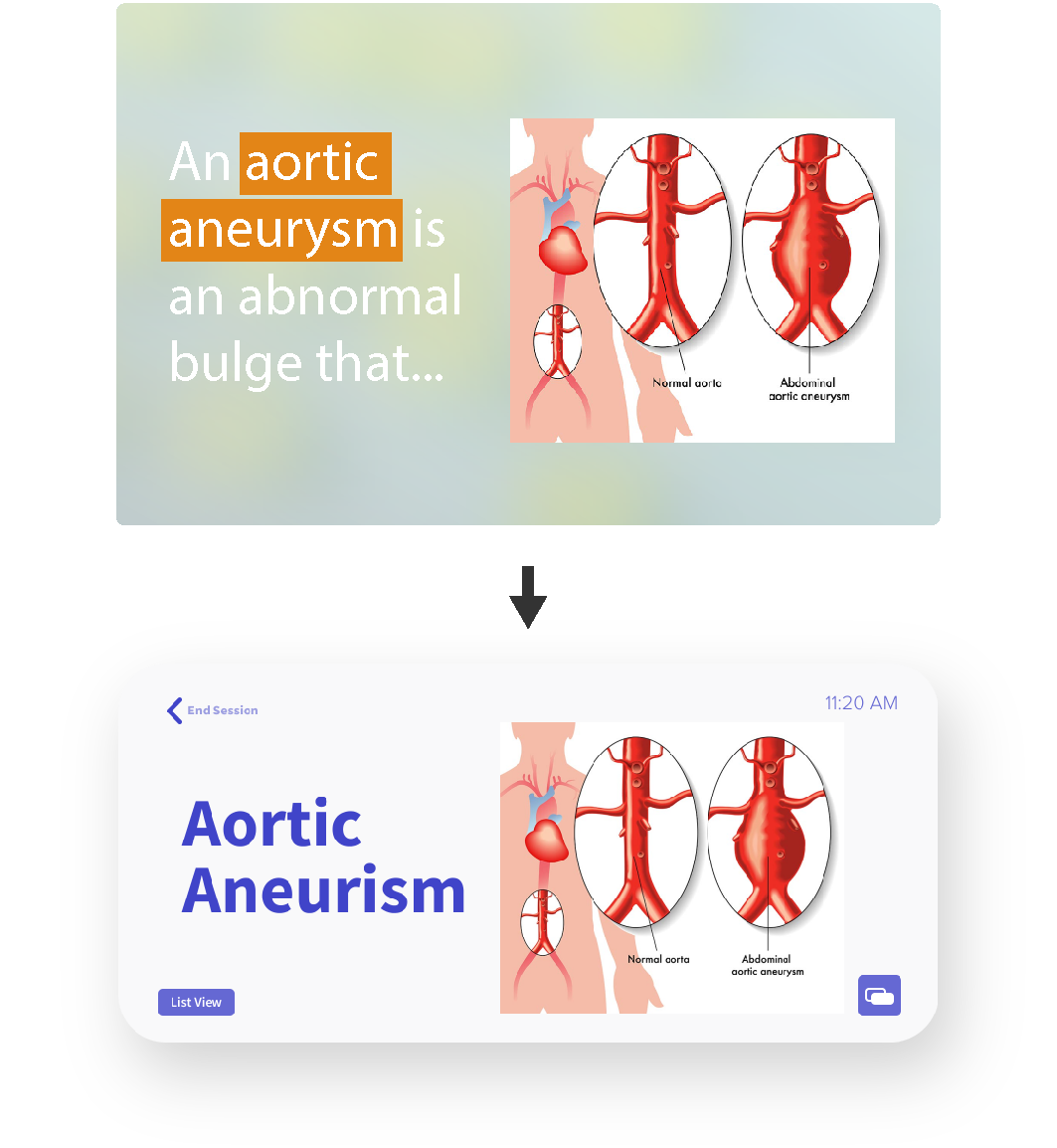 When difficult or technical vocabulary is used during a simultaneous interpretation session, Signsavvy will display the word with corresponding synonyms or an image to help interpreters quickly understand in context to the conversation.