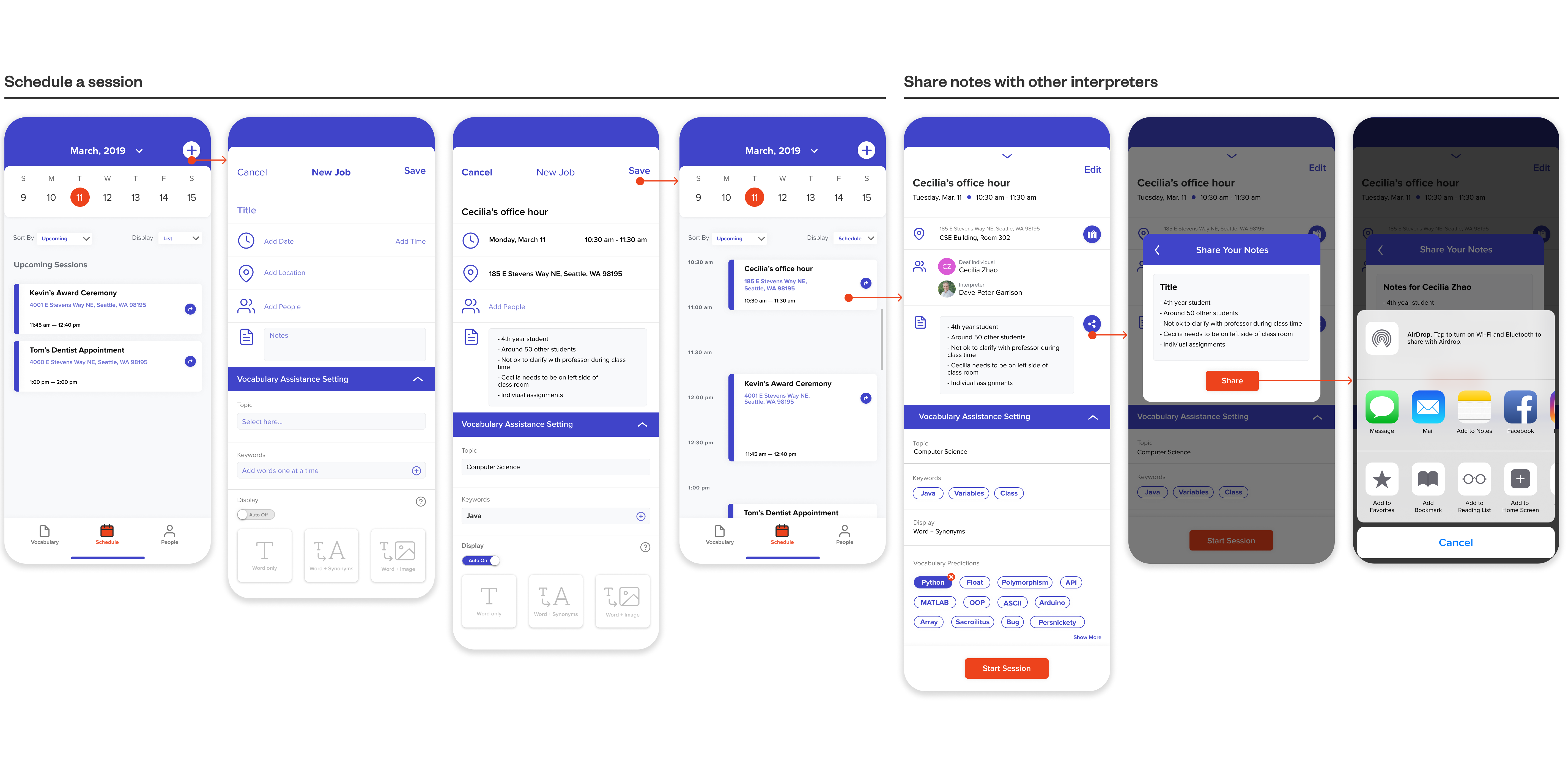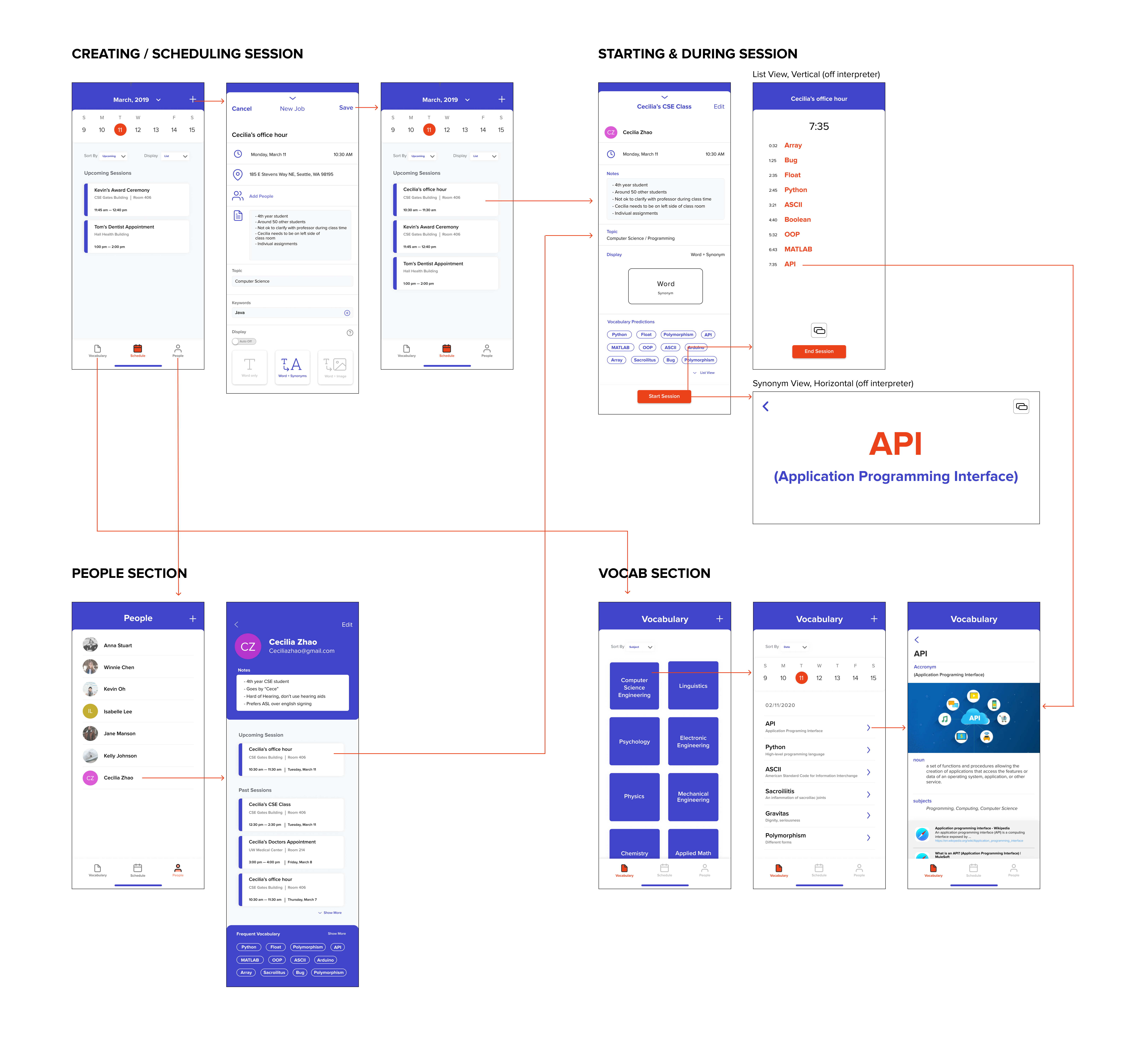 After designing interfaces and an interactive prototype on Figma, we conducted usability testing with two new participants. They were thrilled and impressed by the idea of a product designed for interpreters since they are often overlooked when it comes to inclusive technology.